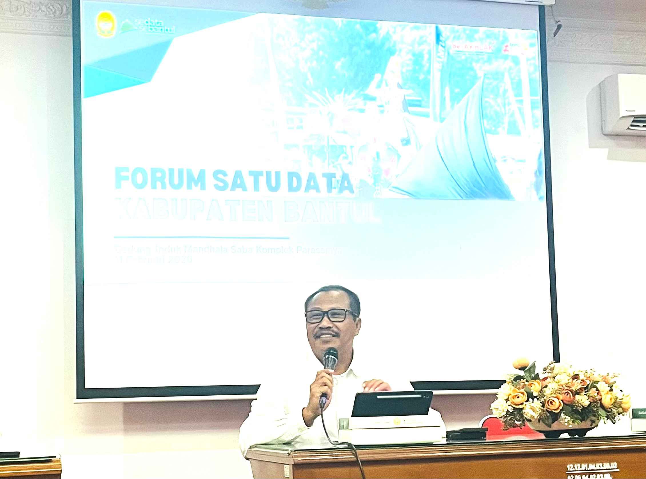 Sekretaris Daerah Kabupaten Bantul, Agus Budiraharja, SKM, M.Kes., dalam sambutannya menegaskan bahwa Forum Satu Data merupakan wujud kolaborasi seluruh Tim Penyelenggara Satu Data. Ia menekankan bahwa kualitas perencanaan dan evaluasi pembangunan sangat bergantung pada data yang tersedia.
