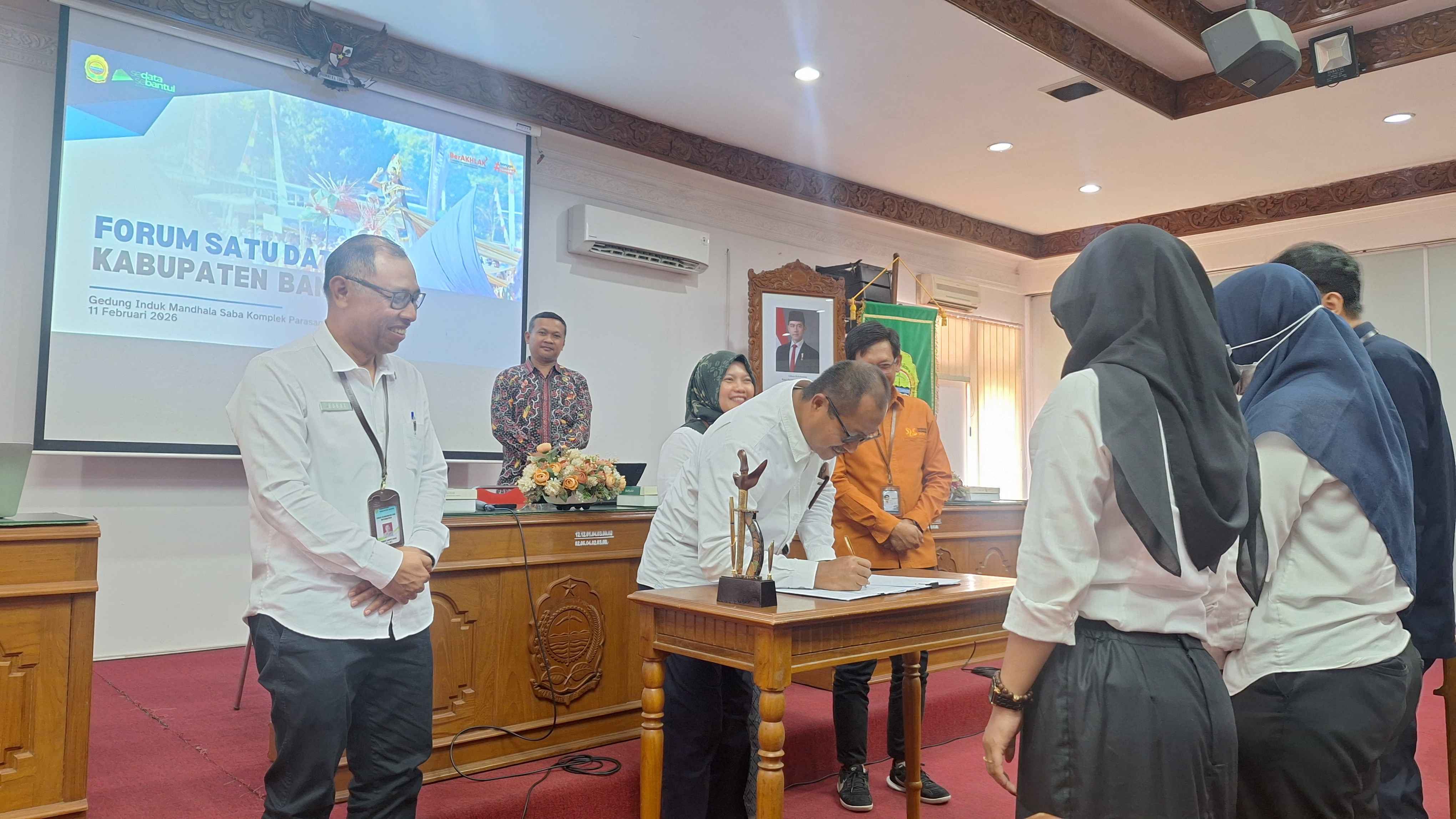 Dinas Komunikasi dan Informatika (Diskominfo) Kabupaten Bantul menghadiri Forum Satu Data Kabupaten Bantul Tahun 2026: Penandatanganan Berita Acara Kesepakatan Daftar Data Tahun 2026 yang diselenggarakan pada Rabu (11/2) di Mandhala Saba, Gedung Induk Lantai 3, Komplek Parasamya Kabupaten Bantul. Forum ini menjadi momentum strategis dalam memperkuat kolaborasi penyelenggaraan Satu Data sekaligus memastikan ketersediaan data yang valid, lengkap, dan tepat waktu untuk mendukung perencanaan serta evaluasi pembangunan daerah.
