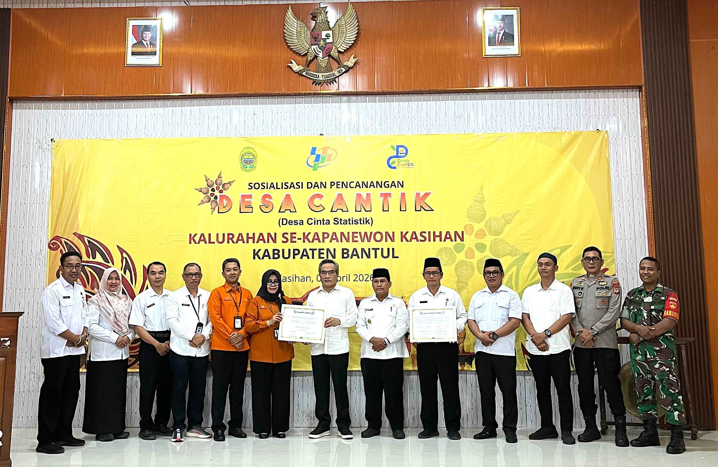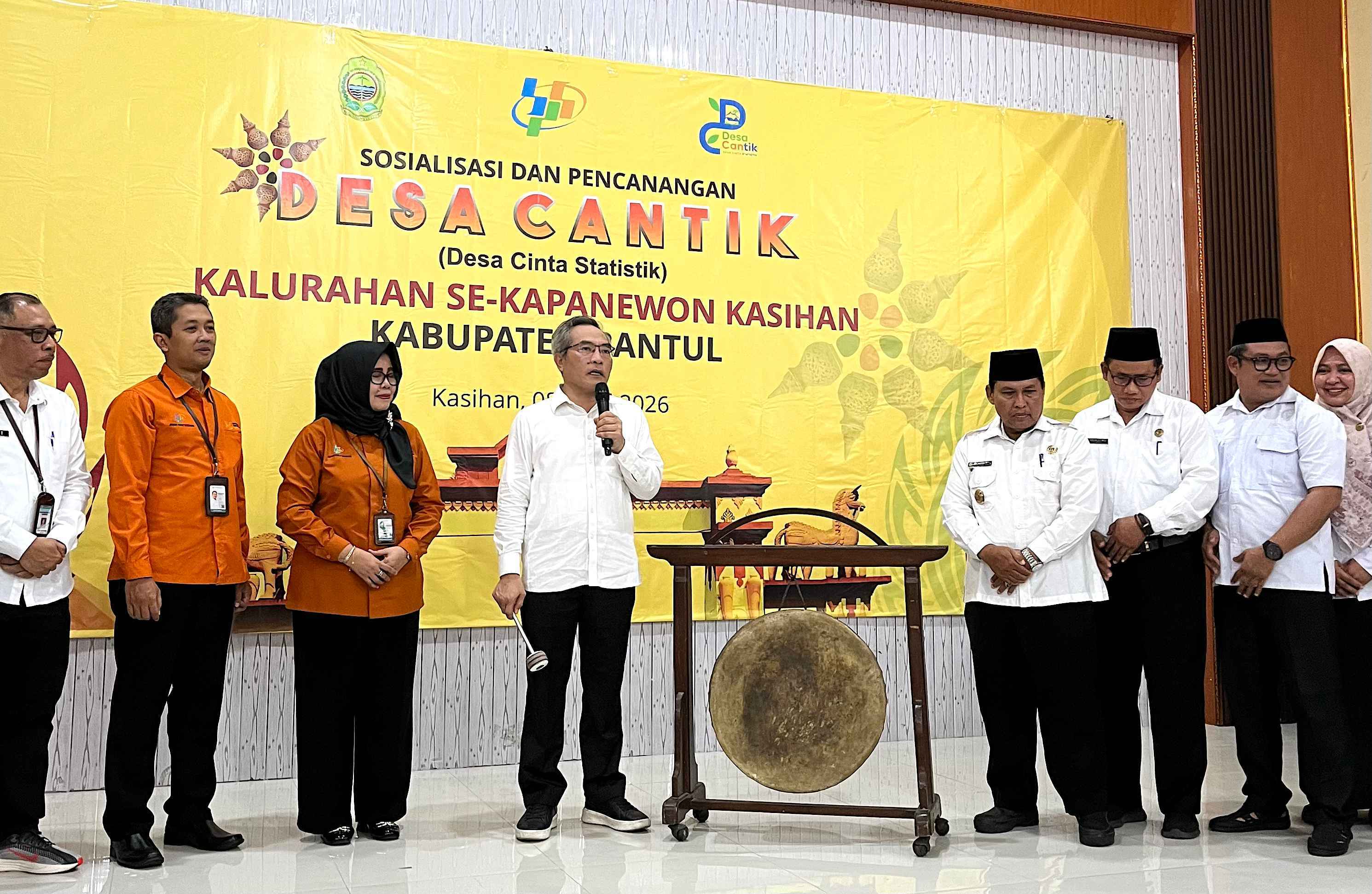 Dinas Komunikasi dan Informatika Kabupaten Bantul menghadiri kegiatan Sosialisasi dan Pencanangan Desa Cantik (Desa Cinta Statistik) Kalurahan se-Kapanewon Kasihan yang dilaksanakan pada Rabu, 8 April 2026, bertempat di Gedung Griyo Nirmolo Kalurahan Tirtonirmolo.